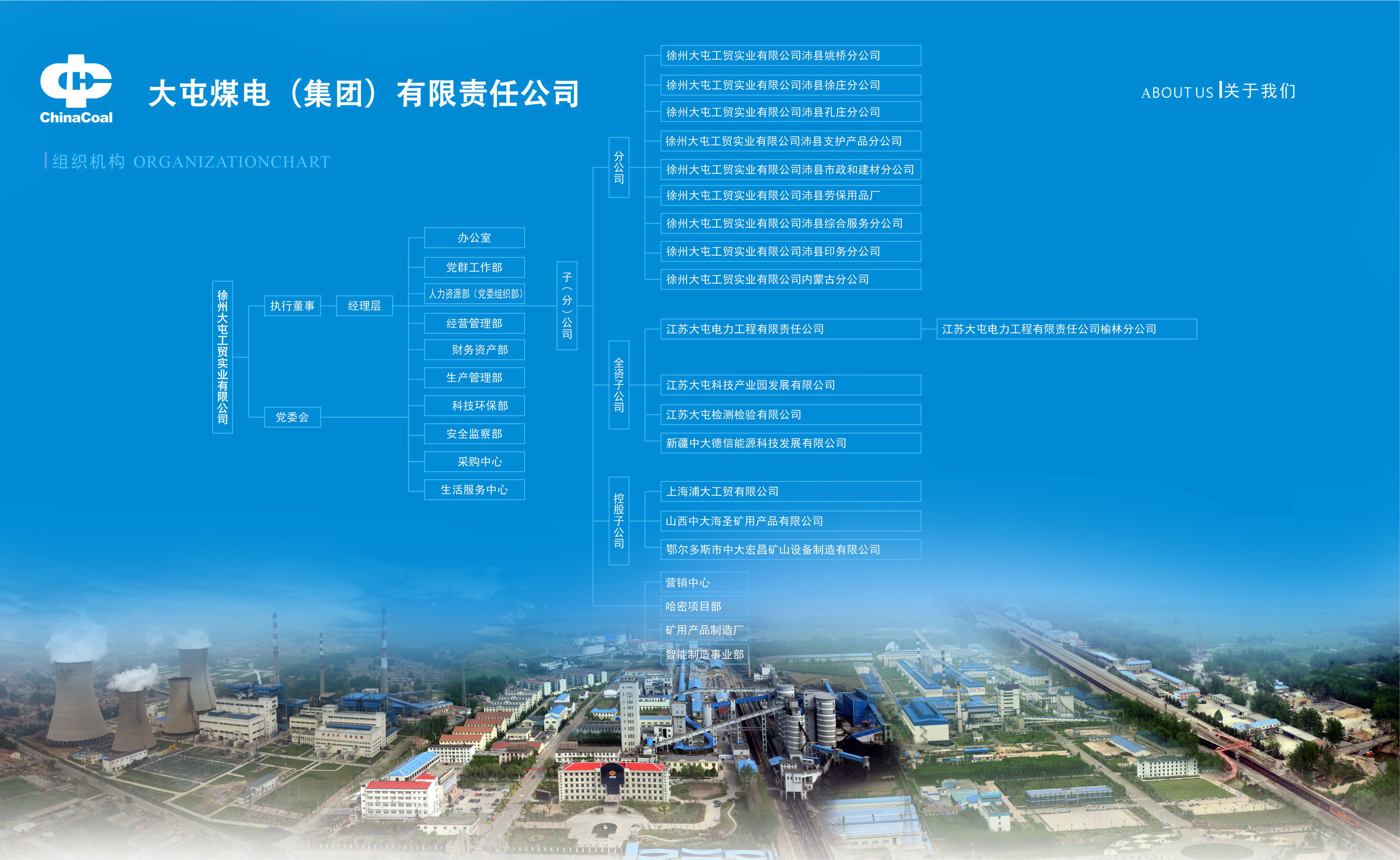 徐州大屯工貿(mào)實業(yè)有限公司(以下簡稱“實業(yè)公司”)隸屬于中國中煤能源集團有限責任公司(以下簡稱“中國中煤”),是大屯煤電(集團)有限責任公司(以下簡稱“大屯公司”)的全資子公司,其前身是成立于2006年11月的徐州大屯工貿(mào)實業(yè)公司,2019年11月,改制為徐州大屯工貿(mào)實業(yè)有限公司。現(xiàn)有12家分公司和8家子公司,注冊資本2.2億元。截至2024年年底,實業(yè)公司資產(chǎn)總額為53,356.93萬元,從業(yè)人員474人,其中具有各類職稱的技術(shù)人員157人,中級以上職稱的技術(shù)人員125人。